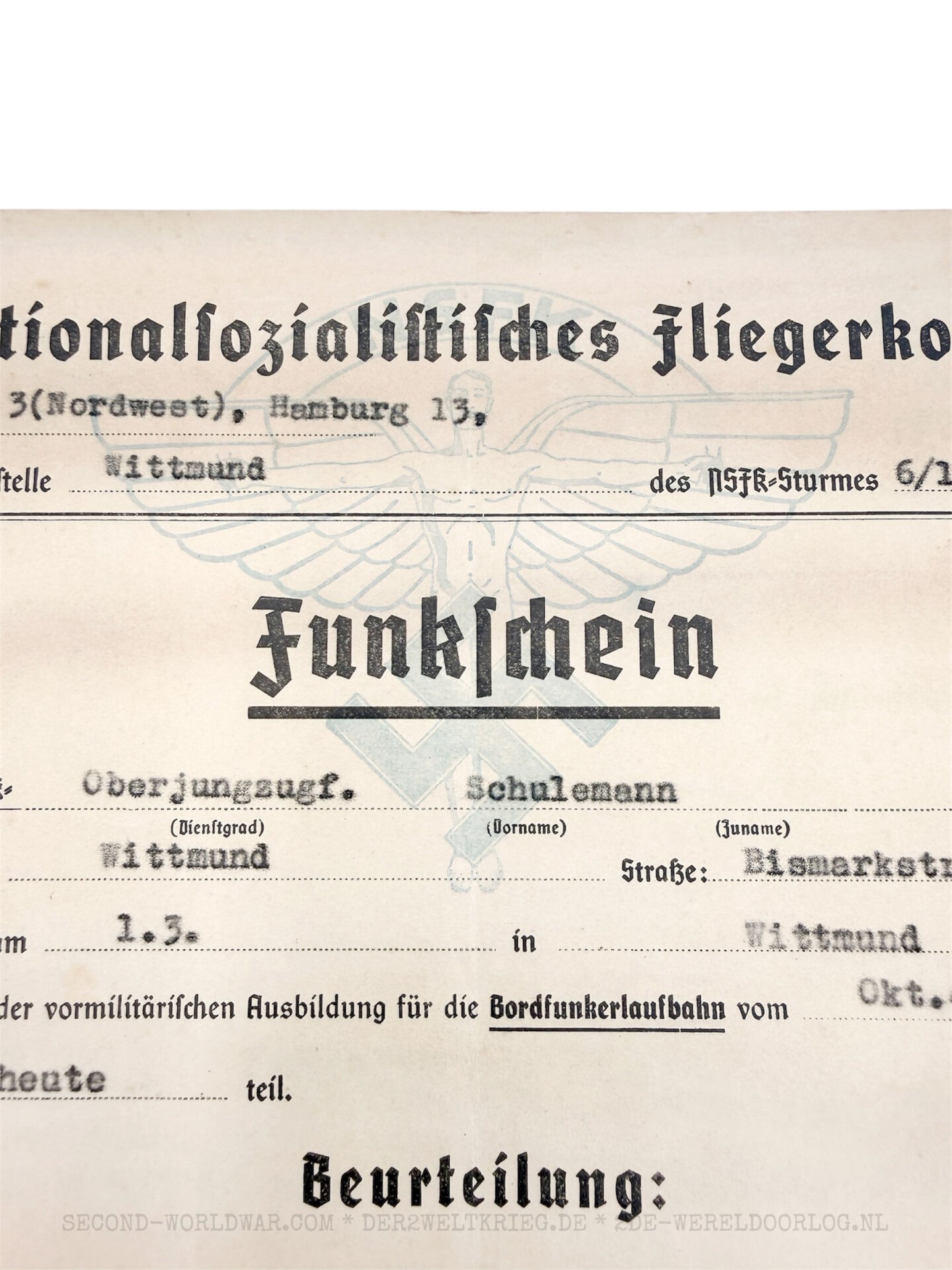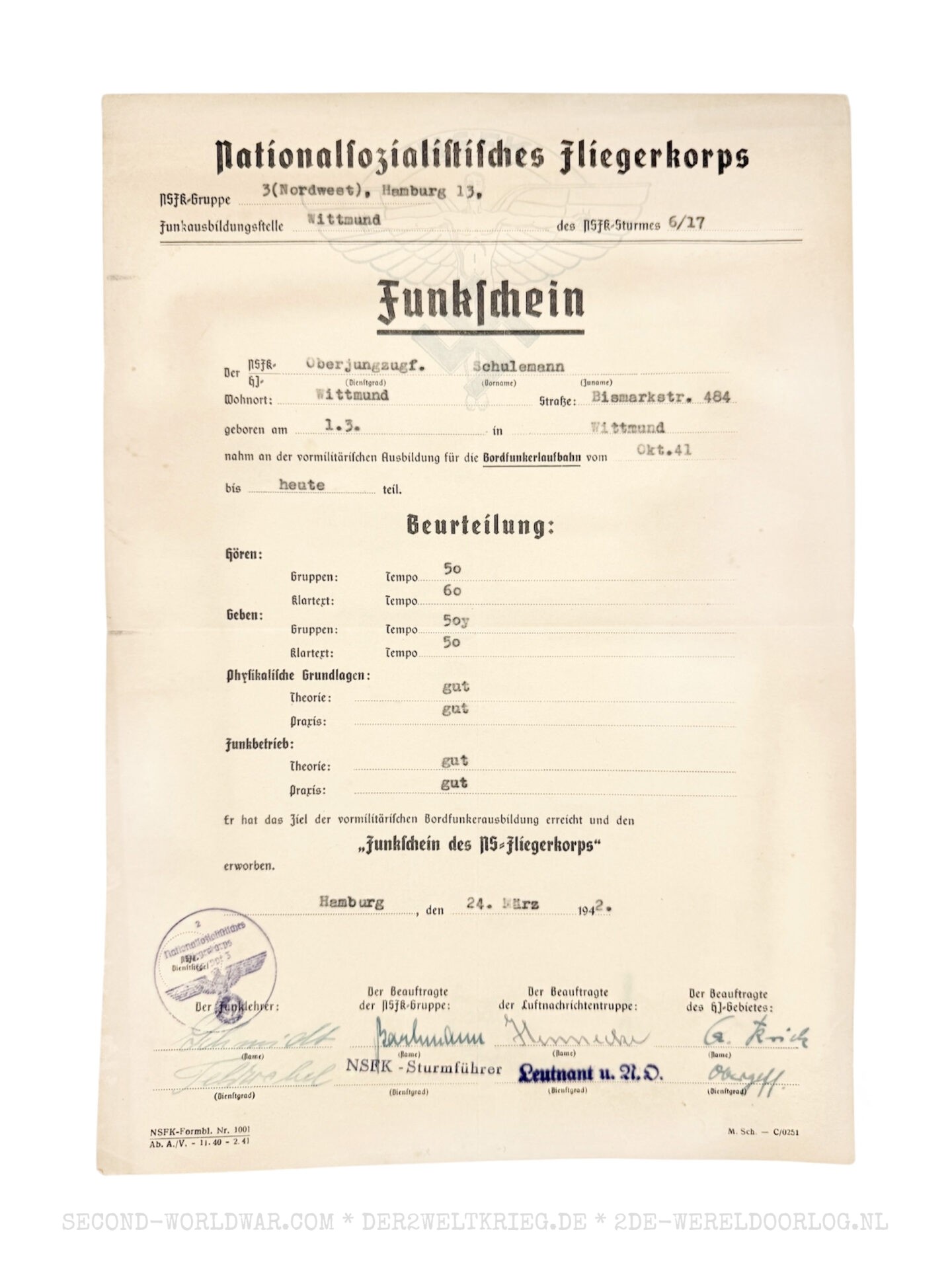 Duits NSFK (Fliegerkorps) boordradio diploma (Funkschein) 1942